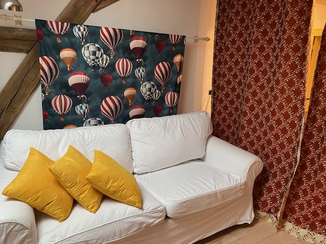 - Le salon fleur de lin, possède également un canapé convertible, si besoin, et vous conduira peut-être à un instant de repos.